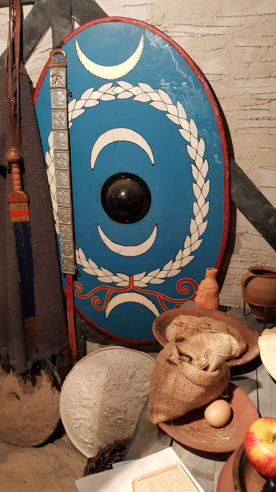Roman grain supplies tended to be of hulled wheat. Emmer (triticum dicoccum) and Spelt (triticum spelta) were carried as grain to prevent mould, and then milled using a small portable quern stone when required. Other grains were oats, millet and barley, though the latter was often considered to be a ‘punishment’ ration. (Perhaps because of digestive results and no toilet paper to hand! 😉 ) The grain was cooked as porridge, bread, hard-tack biscuits, and even in a sort of pancake form when mixed with oil or wine – edible, or not, depending on who cooked for the basic contubernium squad of 8 men. Some lucky squad might have had a poor enslaved captive to do this for them.